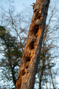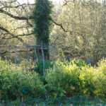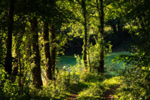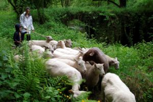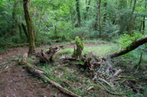 Nous avons dix hectares de terrain situés dans un vallon parcouru par un ruisseau. Ces parcelles sont composées pour moitié en prairies et en bois, formant des milieux extrêmement variés au niveau écosystémique : ici une mégaphorbe avec ses tourillons de carex et la prêle des marais, là une prairie humide envahie de joncs, plus loin, des bois marécageux où fleurissent les iris, les reines des prés et les populages, plus haut, une futaie de chêne, un taillis de châtaigniers, des robiniers, au total plus d’une quinzaine d’essences d’arbres et plus d’une centaine de plantes à fleurs. Autant de biodiversité et autant de ressources pour nos différents besoins en bois d’œuvre, de chauffage, pâture, plantes médicinales et aromatiques. La richesse faunistique découle bien sur de celle de la flore : d’innombrables espèces d’insectes, batraciens, oiseaux, mammifères petits et grands : papillons citrons ou azurés, rhinolophes, libellules, loriot, huppe, pic épeiche, chevêche, renard, chevreuils, sangliers, cerfs, martres et même une genette. Un vrai paradis pour les naturalistes ! Nous nous efforçons de gérer ce patrimoine comme un trésor. Vous remarquerez que nous laissons des arbres morts pour ménager des dendro-habitats, des ronciers pour la nidification, et que nous n’intervenons que là et quand cela est nécessaire.
