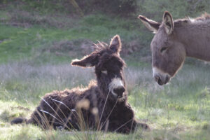 Faisons maintenant connaissance avec nos colocataires et commençons par Neige. Ce jeune fou vous accueillera joyeusement dès votre arrivée. N’ayez pas peur et repoussez le fermement si vous n’appréciez pas ses effusions. Plus discrètes, Wazabi et Tamari, nos deux chattes, se prélassent lorsqu’elles ne sont pas en train de chasser le campagnol. Nous avons aussi des poules, que nous élevons pour les œufs, des abeilles, des tortues et des brebis dans la prairie. Enfin, nos copains à grandes oreilles, Plic Ploc et Black Block. Vous pourrez vous balader avec eux. Mais à ceux-là, il faut ajouter tout le petit monde sauvage : sittelles, rouge-queues, mésanges, hérissons, salamandres, rénettes, lézards, libellules et tant d’autres…